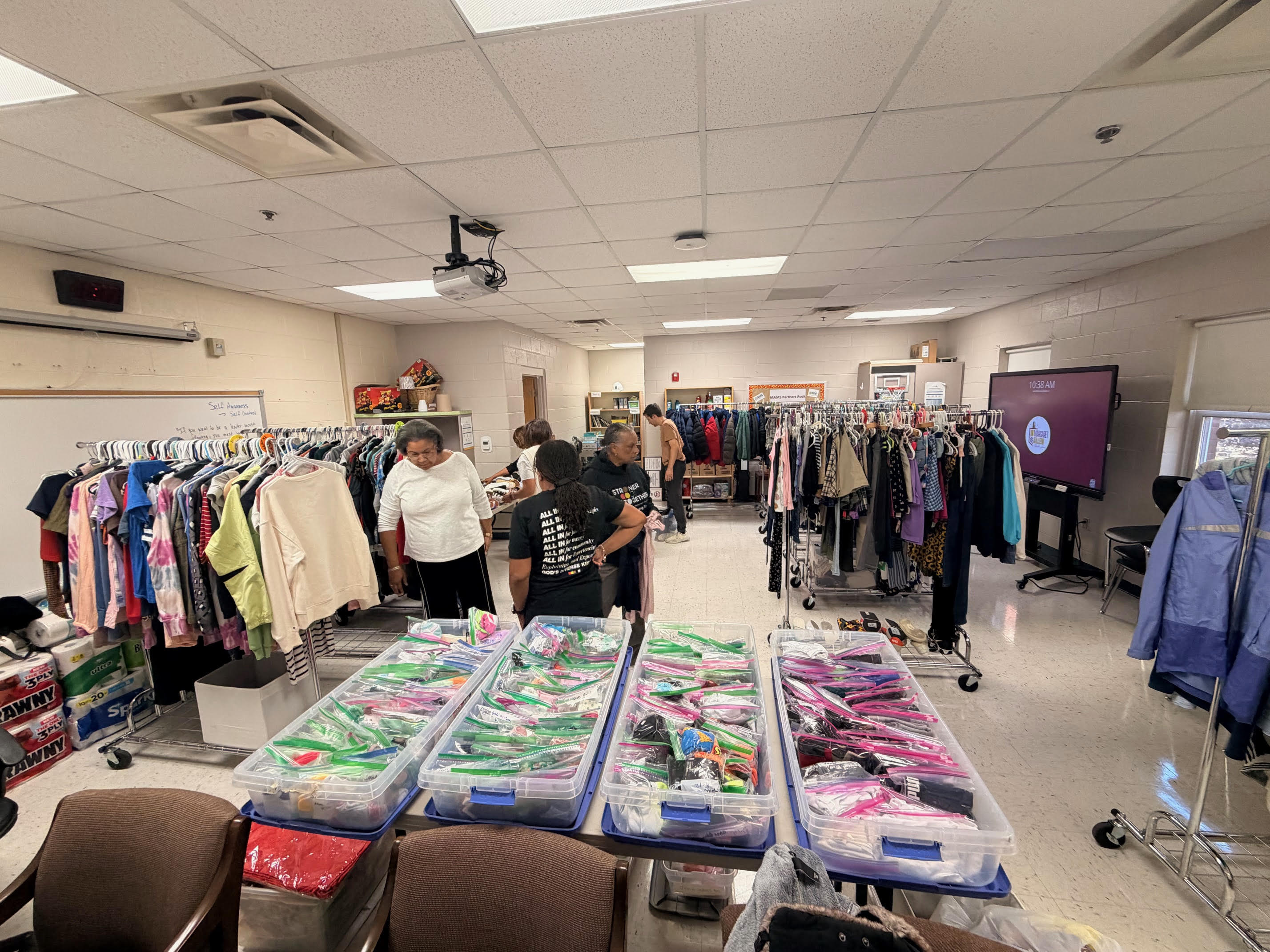 Strong Tower has converted a 20-foot trailer into a rolling ministry vehicle, including two dressing rooms… and it is stocked with middle school age-appropriate clothing, hygiene items, and school supplies.
